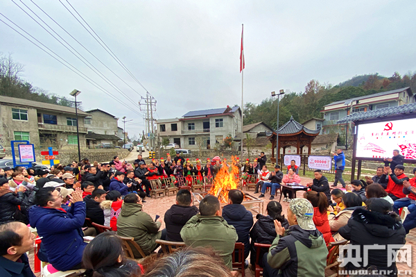 央廣網(wǎng)張家界12月20日消息(記者堯遙)隆冬時(shí)節(jié),湖南省張家界市武陵源區(qū)索溪峪街道田富村望遠(yuǎn)屋場(chǎng),廣場(chǎng)中央的大盆里火燒得正旺,村民從四周趕來(lái),團(tuán)團(tuán)圍坐在一起,交談甚歡。