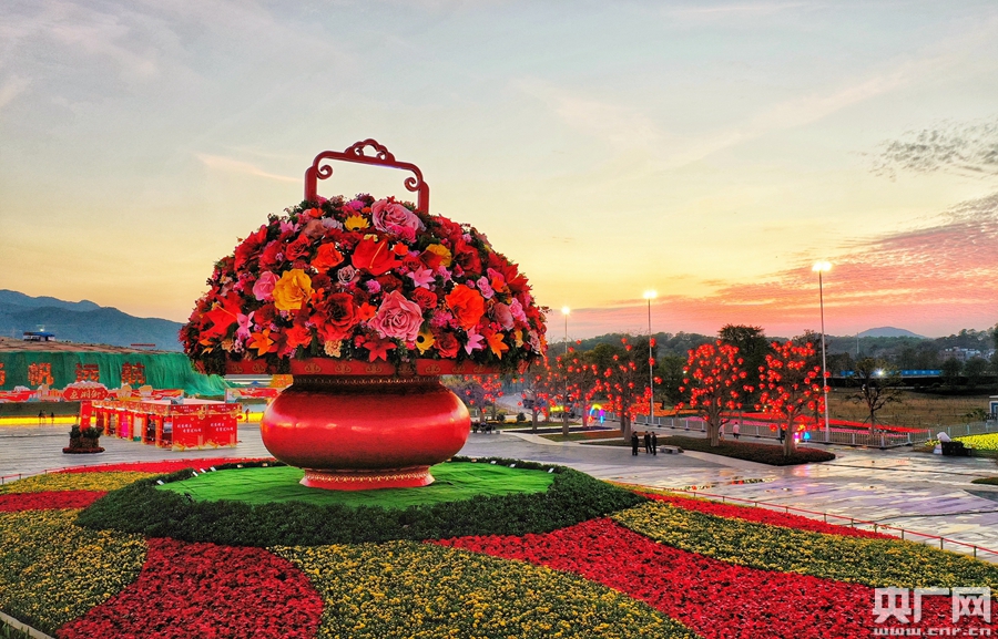 高達(dá)15米的大花籃是知識城分會場的亮點之一。待華燈初上,圍繞花籃萬盞燈籠點亮,呈現(xiàn)火樹銀花的勝景。