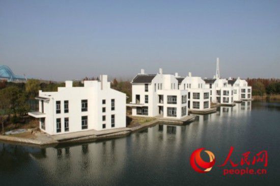 記者來到位于南京三橋旁邊的水利公園,在公園靠湖的位置,這五棟白色建筑格外顯眼,建筑主體已完工,外墻涂刷完畢,只是內(nèi)部還未裝修。建筑旁還建有一個(gè)網(wǎng)球場,粗略估計(jì)這五棟建筑面積在2000平米左右。附近一名村民介紹,這些建筑在2013年6月建成后便一直停工。在建筑的大門口,記者看到門頭上赫然寫著“老碼頭文化產(chǎn)業(yè)園”的字樣,大門被木板封住,外人無法進(jìn)入。