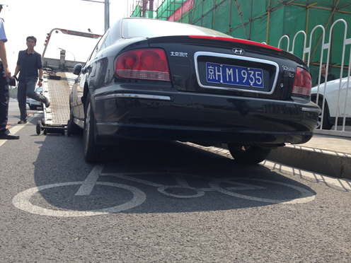 由于當時車主不在現(xiàn)場,執(zhí)法人員只能將車輛拖離現(xiàn)場,在拖車的過程中,車主出現(xiàn)。但是由于涉嫌在非機動車道上違法停車,車主被處以100元罰款,并記3分。