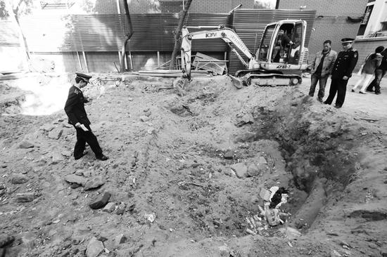 位于東城青龍胡同10號院的一租戶雇人偷偷施工,將房內(nèi)及院內(nèi)空地私自挖出深達一兩米、面積318平方米的“地下室”。昨天下午,東城區(qū)多個部門聯(lián)合執(zhí)法,將地下空間強制回填,至昨日傍晚,該處地下室已經(jīng)被填平。目前東城區(qū)城管正在對具體責(zé)任人進行確定。