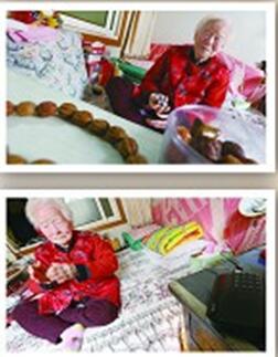 “我們社區(qū)到2016年就有4名百歲老壽星了,這是我們社區(qū)的福氣。”記者在臺東六路社區(qū)居委會負(fù)責(zé)老齡工作的崔宏偉副主任帶領(lǐng)下,來到了楊惠祥老人家里。滿頭白發(fā)的老壽星手里轉(zhuǎn)著兩個鐵質(zhì)健身球,坐在床上跟已經(jīng)82歲的女兒姜金英聊天。看到記者和志愿者上門,楊惠祥老人熱情地招呼大家,非常感激社會對她的關(guān)心。姜金英講述,母親的前半生過得很苦,老了之后終于苦盡甘來。母親是煙臺龍口人,在姜金英只有兩三歲時,父親就不幸去世了,母親沒有再婚,含辛茹苦地把獨(dú)生女兒拉扯大。姜金英長大后才知道,父親的去世是母親心里永遠(yuǎn)的痛。她的父親其實(shí)是枉死的,當(dāng)年國民黨到村里攤派抓壯丁,地主舍不得讓自己的孩子上前線當(dāng)炮灰,就給了爺爺一些大洋,讓父親頂替地主的兒子被抓走了。沒過幾年傳回來消息,父親不幸去世了。爺爺沒把這個消息告訴母親,讓她被蒙在鼓里很多年。
