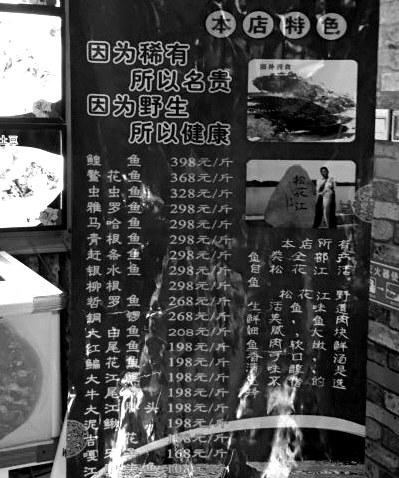 鰉魚(yú)頭并未在飯店公示的易拉寶菜牌上“明碼標(biāo)價(jià)”。