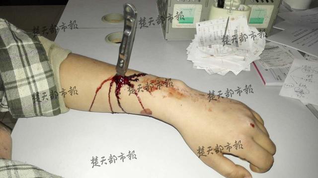 今日,楚天都市報(bào)從武漢市第三醫(yī)院獲悉,受傷男子的刀刃長達(dá)8厘米,險(xiǎn)些將手臂戳穿,幸虧沒傷著血管和神經(jīng),否則后果不堪設(shè)想。