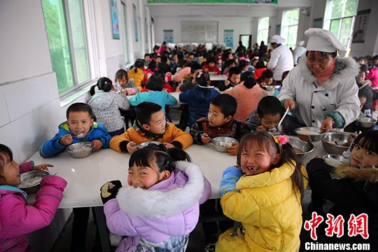 資料圖:學(xué)生們正在新建的學(xué)生食堂吃著營養(yǎng)午餐。 中新社發(fā) 劉杰華 攝