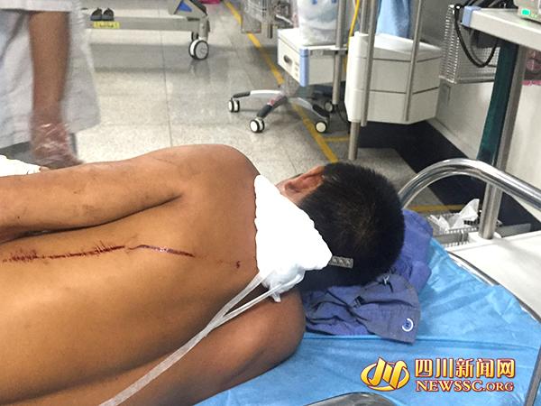 今日中午11點(diǎn)過,四川新聞網(wǎng)記者趕到省醫(yī)院急診科看到,都師傅剛從CT室做完檢查,在他的左肩胛部仍能看到一小截鋼筋,在他的正面前胸處可以看到鋼筋的另一頭,但沒有刺穿。他側(cè)臥在病床上,睜著眼睛,沒有說話。