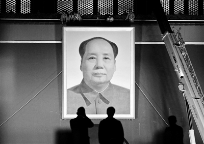 據(jù)了解,每年國慶節(jié)前夕,天安門城樓都要更換新的毛主席畫像,被風(fēng)吹日曬稍許褪色的舊畫像則被取下。