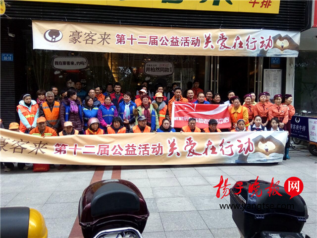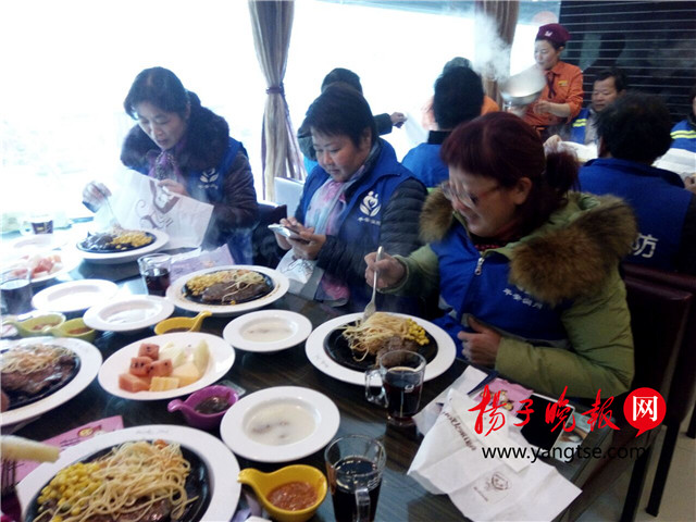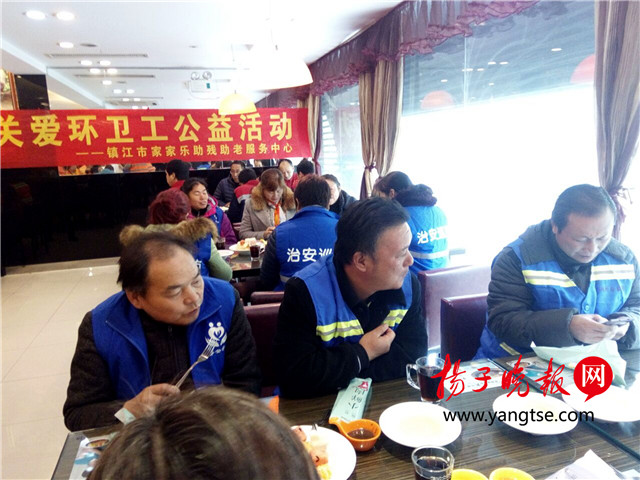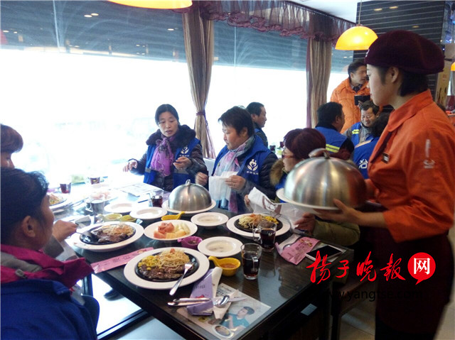 揚(yáng)子晚報(bào)網(wǎng)11月25日訊(通訊員 施澎 戴勇 記者 萬(wàn)凌云) 時(shí)近年末天寒地凍,然而社會(huì)各界人士關(guān)愛環(huán)衛(wèi)工人的熱情卻一波波來(lái)襲。25日中午,在鎮(zhèn)江市區(qū)夢(mèng)溪路一餐廳內(nèi),鎮(zhèn)江50名環(huán)衛(wèi)工人齊聚一堂,“嘗鮮”吃牛排。這次溫暖、關(guān)愛環(huán)衛(wèi)工公益活動(dòng),是由鎮(zhèn)江公益組織“家家樂(lè)助殘助老服務(wù)中心”和這家餐廳聯(lián)合發(fā)起的。而與以往社會(huì)給環(huán)衛(wèi)工人發(fā)“愛心福利”的方式不同,這次前來(lái)就餐的環(huán)衛(wèi)工中,大多數(shù)都由愛心人士走到作業(yè)地段上,現(xiàn)場(chǎng)邀請(qǐng)召集而來(lái)的。由此,面對(duì)天上掉下來(lái)的“牛排”,邀請(qǐng)人還被當(dāng)成了“騙子”。