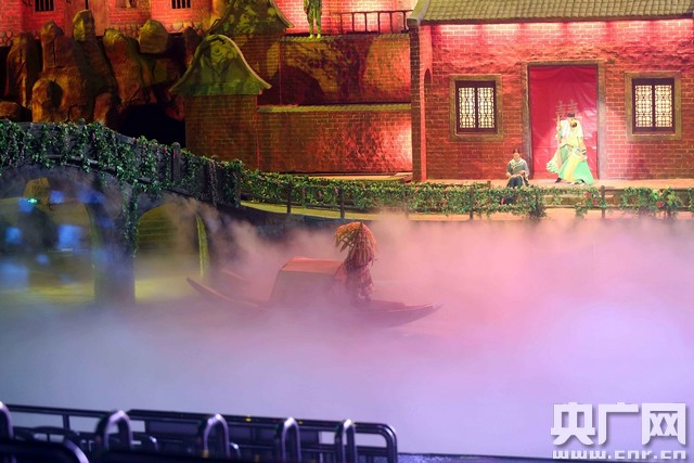 在神游華夏大劇院內(nèi),《閩南傳奇》正在上演,整場演藝共分六幕:天造鷺島、島城大戰(zhàn)、南洋歷險(xiǎn)、漁村人家、龍的傳人、福佑華夏,以閩南文化為主線,融入當(dāng)?shù)靥厣,把民俗、民族風(fēng)、民族音樂和人文歷史,用高科技的展示手法與國際最新的旅游演藝劇目結(jié)合起來。
