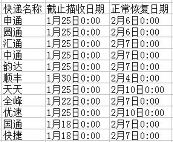 所以,最近還要在網(wǎng)上買年貨、快遞寄東西的小伙伴們可要注意各家快遞公司的運(yùn)營(yíng)時(shí)間哦~