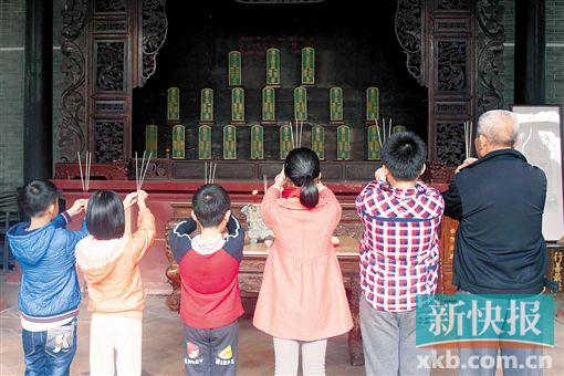 ■番禺區(qū)大龍村里的兒童在老人的帶領(lǐng)下給祖先上香。