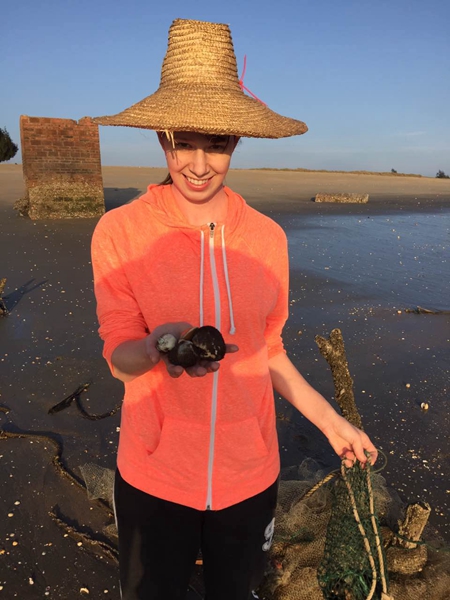 這里是漁村,因此我們吃的每頓飯里都有螃蟹、牡蠣/蛤、魚或者蝦等。我在美國中西部一個小鎮(zhèn)長大,童年并沒怎么吃過海鮮。如今我依然不太能適應吃海鮮,盡管它們都是從島上面鮮活抓回來的。許多人可能認為我瘋了,因為我通常吃的并不多。說實話,有些海鮮我喜歡吃,但有些確實不喜歡。如果吃太多海鮮,我還會生病。我丈夫卻不一樣,他吃起海鮮來,就像一個無底洞,能吃個不停。
