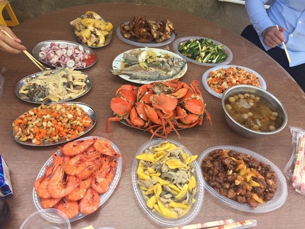 我們走進屋子,丈夫的弟弟、妹妹以及表哥都歡迎我們回家,隨后是他的叔叔、阿姨等長輩。丈夫家的許多家庭成員都在當?shù)爻杉。我估計他家有超過10個親戚在當?shù)厣睢.斕焖母改刚χ谧庥玫膷u上養(yǎng)蝦,我們要到第二天才能見到他們,家中非常安靜。根據(jù)春節(jié)的傳統(tǒng),每個人都平平安安回到家中,一家人團圓在一起。不過屋子的墻上或門上并沒有任何象征春節(jié)的裝飾品,唯一的變化是,客廳的香火燒得更旺了。