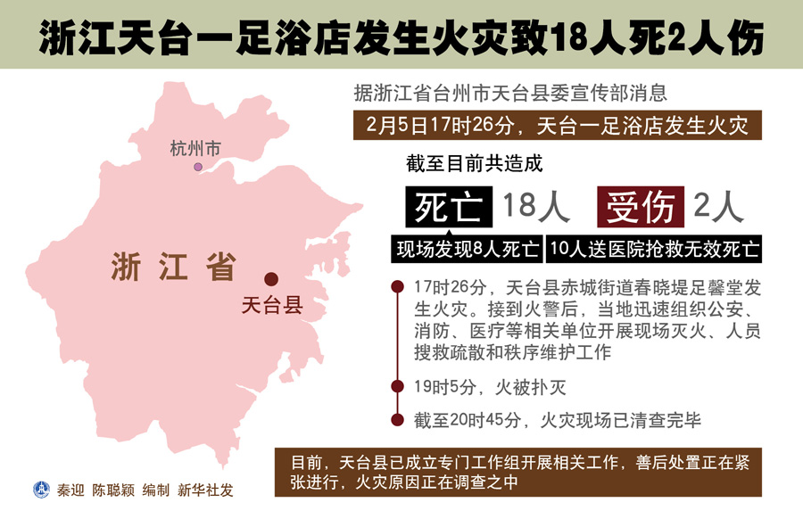 圖表:浙江天臺一足浴店發(fā)生火災(zāi)致18人死2人傷 秦迎 陳聰穎 編制 新華社發(fā)