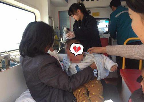 幸虧冬天衣被包裹得多,嬰兒面部有大面積淤青暫無生命危險(xiǎn),10:42分,救護(hù)到現(xiàn)場接走傷員。