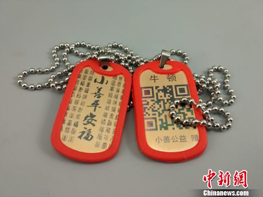 圖為小善公益設計制作的“小善平安!倍S碼防走失身份牌 小善 攝
