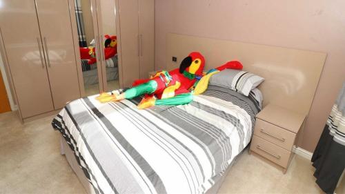 從廣告照片中可見,這名“鸚鵡男子在這套價(jià)值22.5萬(wàn)英鎊的房子的多個(gè)角落留影。有時(shí)在床上、有時(shí)在廁所浴缸里、有時(shí)則在露臺(tái)上燒烤。