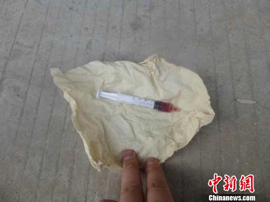 自備針管,制作“血液”,在碰瓷后將針管內(nèi)的“血液”注入耳朵,倒地假裝重傷……自帶道具碰瓷如演戲一般的男子被蘭州警方查獲!∑呃锖咏痪箨牴﹫D 攝