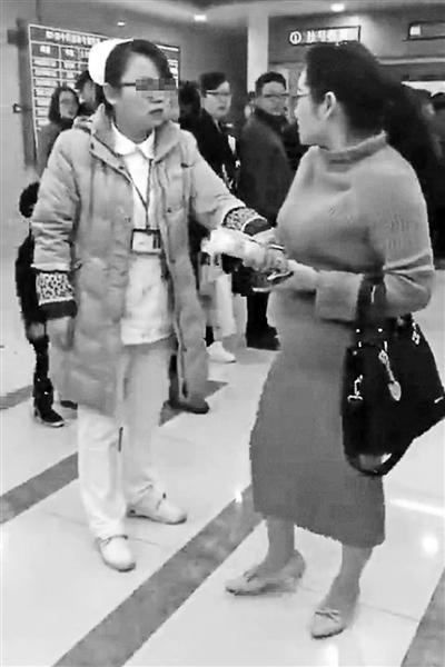 因?yàn)橐欢伍L達(dá)1分15秒的視頻,駱護(hù)士火了。視頻中,身穿護(hù)士工作服的她,緊緊抓住一名身穿綠色毛衣的中年女子,用標(biāo)準(zhǔn)的南京口音斥責(zé)“人家都哭了,你還在騙錢!”這是3月26日周日早晨8點(diǎn)多發(fā)生于南京市婦幼保健院掛號區(qū)的一幕。昨日,駱護(hù)士說,這是她的工作職責(zé)。