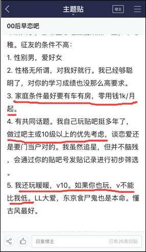 對于此次在貼吧發(fā)貼征男友,則是源于看到表姐在春節(jié)期間被逼婚的情景,因不想淪落到相同境地,故在貼吧發(fā)貼征一位“走心的、能長久的”男朋友。