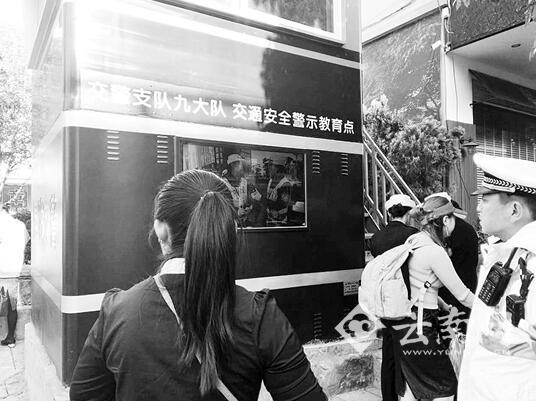 在九大隊(duì)交通安全警示教育點(diǎn)(路口崗?fù)ぃ┣,交警?duì)其姓名進(jìn)行了登記。然后,女孩站在崗?fù)で,看起了警示片。面?duì)直播交警,她說:“我就是為了趕時(shí)間!”直播交警說:“如此一來,你不是浪費(fèi)了更多時(shí)間嗎?”