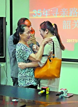 當(dāng)湖北女子何女士風(fēng)塵仆仆地從東莞趕到韶關(guān)時,她仍有些不敢相信自己和離別35年的親生父母就要相見;貞浧鸶改福骸拔抑挥浀冒职謰寢尪奸L的很高!边@是父母留在她幼小的腦海里唯一的印象。