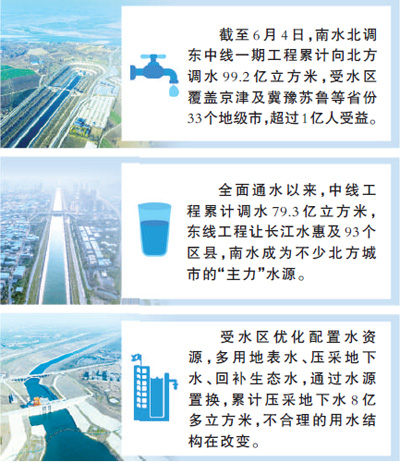 保生態(tài),不合理用水結構在變。南水來了,多用地表水、壓采地下水、回補生態(tài)水,受水區(qū)優(yōu)化配置水資源,通過水源置換,累計壓采地下水8億多立方米。北京“喝存補”并舉,河湖水質明顯改善;天津用南水置換出生態(tài)用水,變應急補水為常態(tài)補水,海河水生態(tài)有了保障;山東向東平湖、南四湖生態(tài)調水2億立方米,干渴的湖泊重現(xiàn)生機。