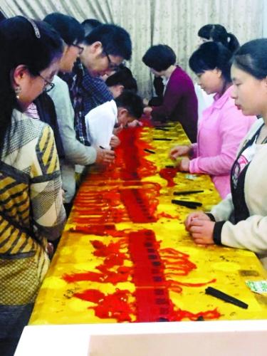 記者注意到,祈福牌的種類不少,但“金榜題名”和“獨(dú)占鰲頭”牌最多。不少游客紛紛掏出錢包購買,然后將被祝福者的名字寫在祈福牌上,再由工作人員小心翼翼地掛起來。