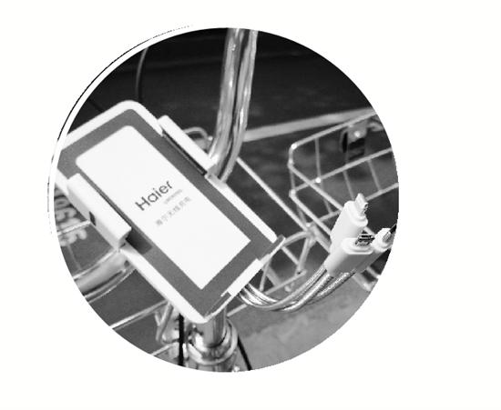 這款單車的一大亮點,就是可以邊騎邊給手機充電。 吳崇遠(yuǎn) 攝