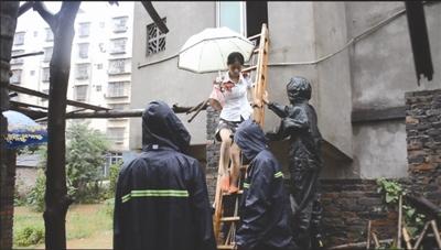 原標(biāo)題:暴雨襲川 住房變“孤島” 搭梯救人