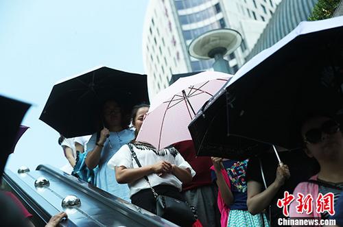 7月21日,上海街頭的行人以各種辦法遮擋炙熱的陽光。當日12時22分,上海中心氣象臺發(fā)布今夏首個高溫紅色預警,中心城區(qū)最高氣溫將達40℃。 中新社記者 湯彥俊 攝