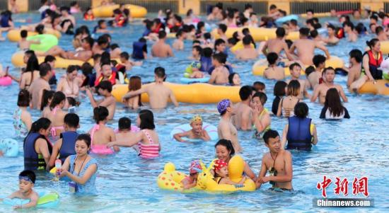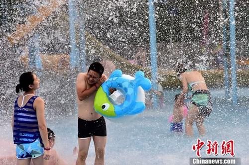 7月19日,游客在武漢市一水上公園戲水納涼。近日,湖北省武漢市持續(xù)高溫天氣,不少市民外出戲水納涼,體驗水上樂園推出的趣味活動。中新社記者 張暢 攝