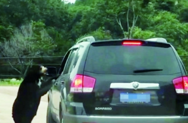 因游客私自投喂食物引來黑熊,在八達(dá)嶺野生園區(qū)內(nèi)并非首次。今年2月26日,北京八達(dá)嶺野生動物世界內(nèi),一只黑熊將爪子伸進(jìn)一輛自駕游汽車的車窗,所幸,未造成人員傷亡。