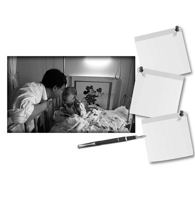 他說,寫了1009篇日記,最難的是兒子腿部感染那階段。開刀做手術(shù),因?yàn)椴∏,不能打麻藥,術(shù)后換藥,兒子撕心裂肺的哭聲讓他們心如刀割。兒子做“腰穿”,整個(gè)身體弓起來,像只大蝦一樣,他們的內(nèi)心除了難受,還是難受。