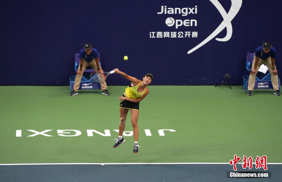 7月30日,中國女網(wǎng)名將彭帥在賽場上奮力拍球。當(dāng)天,2017江西網(wǎng)球公開賽決賽在南昌打響,中國女網(wǎng)名將彭帥以6比3、6比2橫掃日本選手日比野菜緒,奪得賽事冠軍,同時(shí)這也是她第二次在南昌登頂。 中新社記者 劉占昆 攝 -