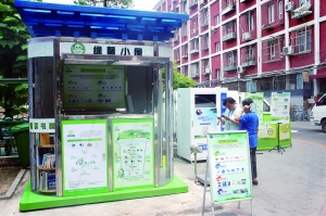 這是勁松中社區(qū)五區(qū)開展的垃圾分類管理模式。負(fù)責(zé)實施該項目的首創(chuàng)智慧公司經(jīng)理李震告訴記者,這種垃圾分類以“全天候固定地點收集”為主,居民可以隨時將餐廚垃圾、可回收物送到小區(qū)內(nèi)的“綠馨小屋”,稱重刷卡后獲取相應(yīng)的活動積分,兌換衛(wèi)生紙、洗手液等生活用品或“一刻鐘”社區(qū)服務(wù)的生活配套服務(wù)。