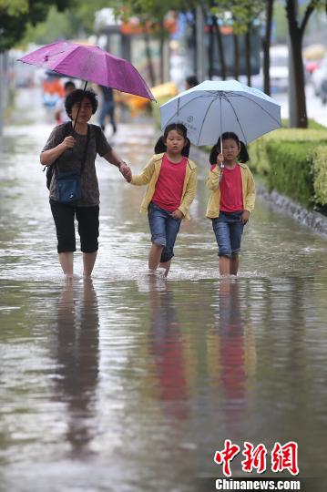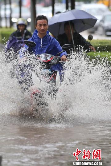 8日上午,江蘇多地迎來(lái)強(qiáng)降雨天氣。圖為南京市區(qū)車輛在積水道路上駛過(guò)!°蟛āz