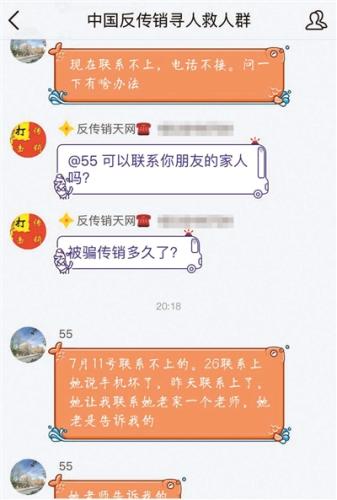 聯(lián)系胡慧的人是一個反傳銷尋人救人QQ群成員,北青報記者以求助人身份加入該QQ群后,當即被告知該群體的救援行動是要收費的!笆召M分情況,要看地區(qū),是在哪里找人,大概是什么范圍。如果難度是非常大的,費用要七八萬元!币晃蝗撼蓡T解釋說,費用中除了一些人工費、車費和住宿費外, “主要還是看當事人有沒有用一些社交軟件,我們要通過一些手段去定位,還要收取一部分技術費用!