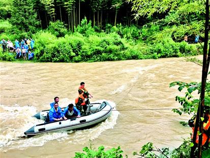 40人送葬隊伍被困消防拋繩擺渡實施救援