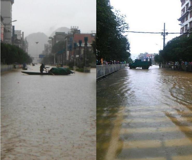 受上游持續(xù)強(qiáng)降雨影響,廣西融水縣融江水位猛漲, 13日晚上11點(diǎn)半左右,洪水開(kāi)始涌入融水縣城,城區(qū)低洼地段被泡。