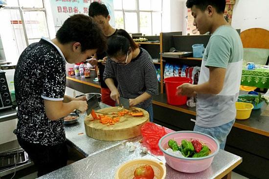 同學(xué)們在共享廚房做飯。圖片來源:中國青年報(湖北大學(xué)楊海北供圖)