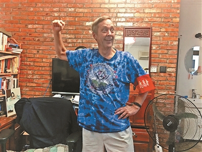 西城區(qū),什剎海,彎彎繞繞的胡同里,住著62歲的美國(guó)大爺高天瑞。因?yàn)樵谝欢巍拔鞒谴髬尅钡男麄饕曨l中出鏡,在北京生活了22年的老高走紅網(wǎng)絡(luò)。視頻中,老高坦言想成為什剎海區(qū)域的治安志愿者——“西城大媽”,并希望自己能夠一直在北京生活。高天瑞告訴北京青年報(bào)記者,視頻拍攝結(jié)束后,他將“西城大媽”的“紅袖章”隨身攜帶,但“因?yàn)檫沒(méi)有做很多幫助別人的事,所以有點(diǎn)不好意思戴(在衣服上)”。因?yàn)楣ぷ骱炞C已經(jīng)到期,高天瑞現(xiàn)在報(bào)了一家教授中文的學(xué)校,擁有了學(xué)生簽證,但學(xué)生簽證9月8日也將要過(guò)期!皼](méi)有退休簽證,對(duì)我來(lái)說(shuō)很遺憾,我希望能一直留在北京生活,因?yàn)檫@里是我的家。”