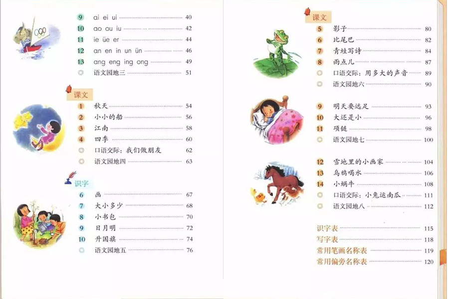 今年新入學(xué)的小學(xué)生拿到語(yǔ)文課本后,打開(kāi)書(shū),是這樣的: