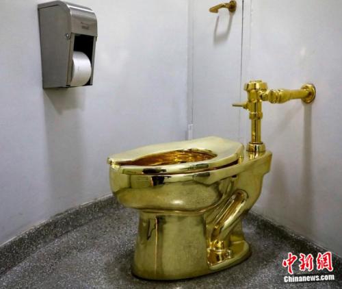 據(jù)報(bào)道,這個(gè)金馬桶是意大利藝術(shù)家卡泰蘭(Maurizio Cattelan)的作品,命名為“亞美利加”(America),可以正常使用與沖水。