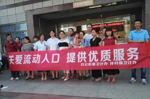 許村鎮(zhèn)衛(wèi)計辦工作人員、流動黨員支部書記倪永泉和計生協(xié)會會長胡紅梅組織56個育齡婦女到白云街道醫(yī)院接受免費(fèi)健康體檢。