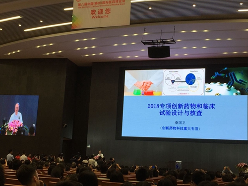 出席開幕式的有全國人大常委會原副委員長桑國衛(wèi),江蘇省人民政府省長吳政隆,中國國際貿(mào)易促進委員會會長姜增偉,國家食品藥品監(jiān)管總局副局長焦紅,中國農(nóng)工黨中央副主席曲鳳宏,江蘇省人民政府副省長藍紹敏,泰州市委書記曲福田,泰州市市長史立軍,中國工程院院士沈倍奮、劉秀梵、夏咸柱、金寧一,軍事醫(yī)學(xué)科學(xué)院生物工程研究所所長陳薇、研究員張永祥,德國科學(xué)院院士來茂德,英國皇家醫(yī)學(xué)院院士朱寧文,西班牙皇家科學(xué)院院士阿德里安,國際遺傳工程與生物技術(shù)中心總干事馬烏洛·吉阿卡,巴西維亞納市市長吉爾森·丹尼爾·巴蒂斯塔等。藍紹敏、焦紅、姜增偉、曲福田等分別致辭,桑國衛(wèi)先生作了題為《2018專項創(chuàng)新藥物和臨床試驗設(shè)計與核查》的主題報告。