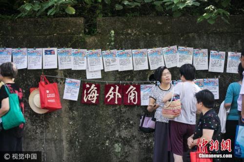 資料圖:2017年7月15日,杭州一條馬路兩邊,數(shù)百名大伯大媽前來“相親”,現(xiàn)場還特別設置了海外學子的專區(qū),貼著的大部分都是70后80后年輕人的信息。 視覺中國