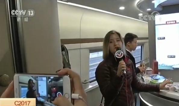 這位在復(fù)興號高鐵旁進(jìn)行出鏡拍攝的女記者,來自美國中文電視臺。第一次來北京,她就迫不及待地要體驗(yàn)中國高鐵。進(jìn)入車廂后,這些外國記者們可不像中國乘客一樣老實(shí)坐著,而是扛著“長槍短炮”到處尋找這個中國“新發(fā)明”到底有何高明之處。