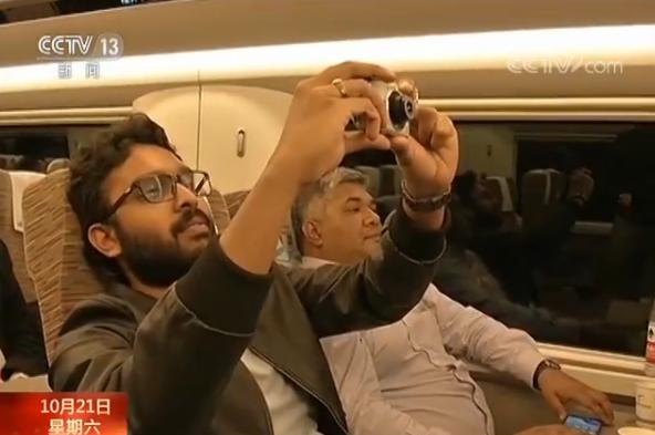 同樣是第一次來到北京的這位毛里求斯的記者,特別關(guān)注高鐵跑起來速度能有多快。盯著電子屏上逐漸顯示變快的速度,手里的照相機(jī)也一直沒停下來。