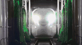 對(duì)兩段車頭部位、轉(zhuǎn)向架等進(jìn)行再次刷洗。
